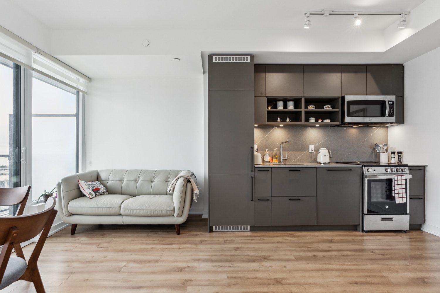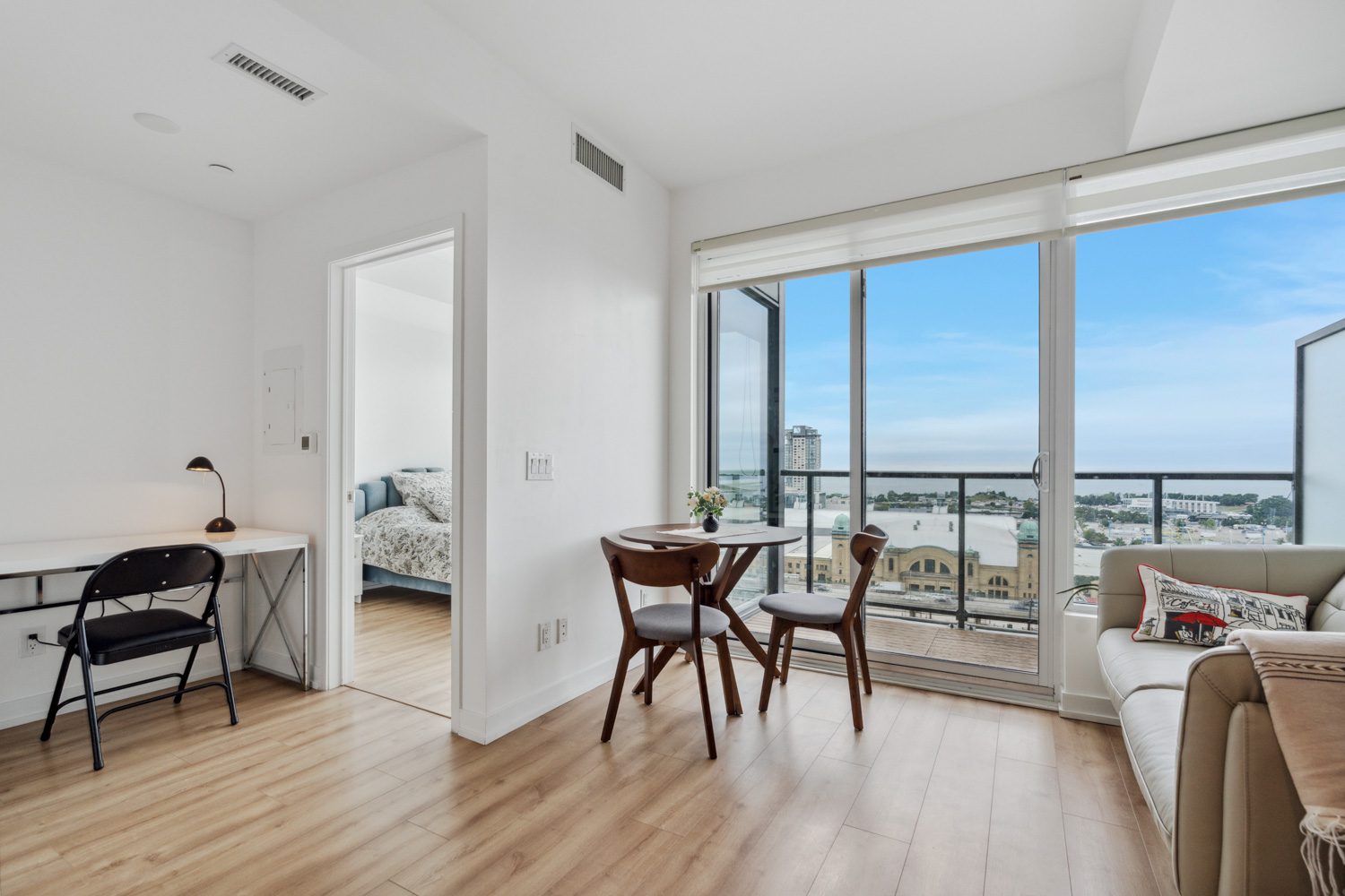 Wake up to lake views and the pulse of Liberty Village in this stylish 1-bedroom condo built for modern urban living. The open-concept living, dining, and kitchen area is bright and functional, featuring floor-to-ceiling windows, a seamless layout for entertaining or relaxing, and enough room to comfortably incorporate a dedicated work-from-home setup. The contemporary kitchen offers clean lines and efficient storage, flowing effortlessly into the living space with unobstructed views of Lake Ontario and BMO Field, perfectly positioned to enjoy the excitement of the World Cup from the comfort of your own balcony! The bedroom has ample closet space, and the modern bathroom is finished with sleek, condo-chic details designed for everyday comfort. Residents enjoy access to premium building amenities including a fully equipped fitness centre, party and lounge spaces, and bike storage, making it ideal for an active, on-the-go lifestyle. Located in the heart of Liberty Village, you’re steps to some of Toronto’s best cafés, craft breweries, restaurants, fitness studios, and everyday conveniences, with easy access to transit, waterfront trails, and downtown. Ideal for professionals and creatives who want walkability, energy, and a true live-work-play neighbourhood. Urban living elevated, this is Liberty Village at its best.