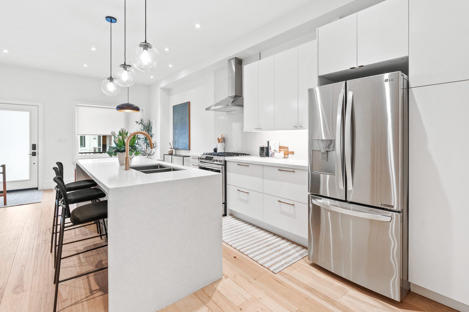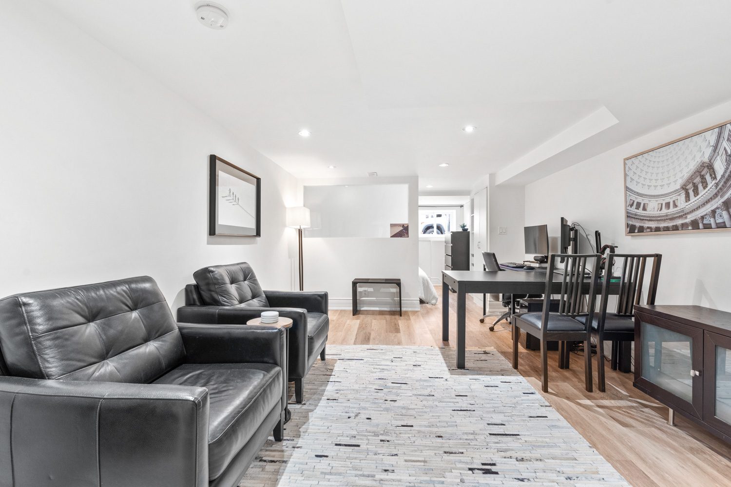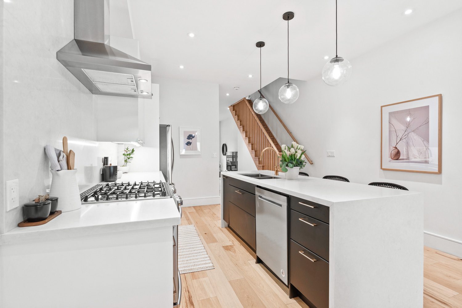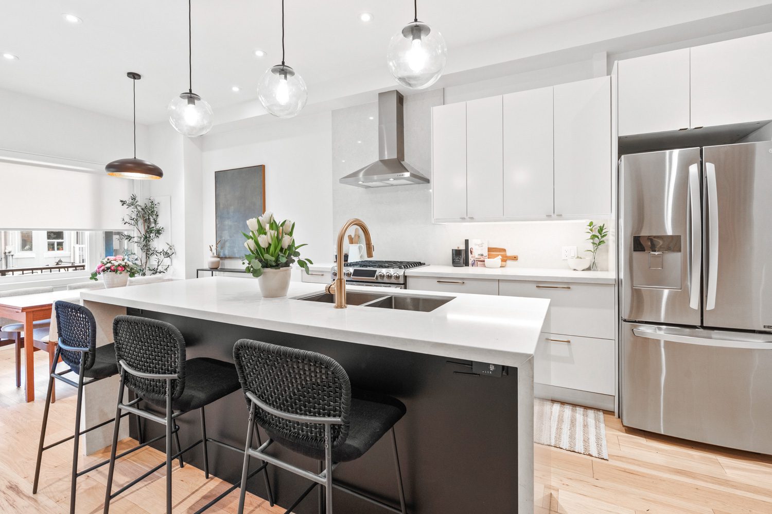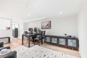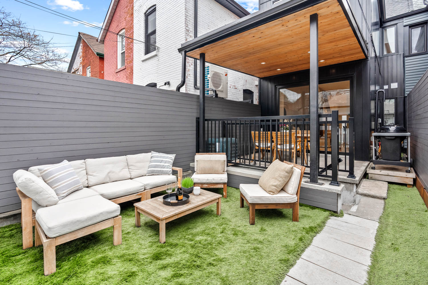 Rare Gem near Trinity Bellwoods! A fully renovated, income-generating home with parking, outdoor space, and future expansion potential, all set in the heart of one of Toronto’s most vibrant neighbourhoods. Completely rebuilt on the main and upper levels in 2018, this home blends thoughtful design with quality craftsmanship. The main floor is bright, open, and built for modern living. A custom kitchen anchors the space, featuring quartz countertops, a large island, stainless steel appliances, gas stove, built-in ice maker, and extensive custom millwork including integrated storage and a bar setup. The layout flows seamlessly into the dining and living areas, enhanced by new flooring, updated lighting, and smart storage throughout. Walk out to your private back deck for easy indoor-outdoor living, plus a convenient main floor powder room. Upstairs, two well-proportioned bedrooms include a spacious primary retreat with a walk-in closet and the added convenience of second-floor laundry. The spa-inspired bathroom features heated floors, a soaker tub and rain shower. The lower level offers a self-contained basement suite with a separate rear entrance, updated flooring, insulation, and waterproofing. Ideal for rental income, extended family, or flexible use. Outside, enjoy a low-maintenance backyard with long-pile artificial turf, drainage system, and cedar fencing, plus a detached garage with parking for approximately 1.5 vehicles and ample storage. An electrical conduit is already in place for a future EV charger. Renovated with foresight, the home is built to accommodate a future third-storey addition, unlocking long-term value. Located just steps to Trinity Bellwoods Park, top restaurants, cafés, and local shops, with easy access to transit and the downtown core, this is city living at its best. Connected, convenient, and full of energy.